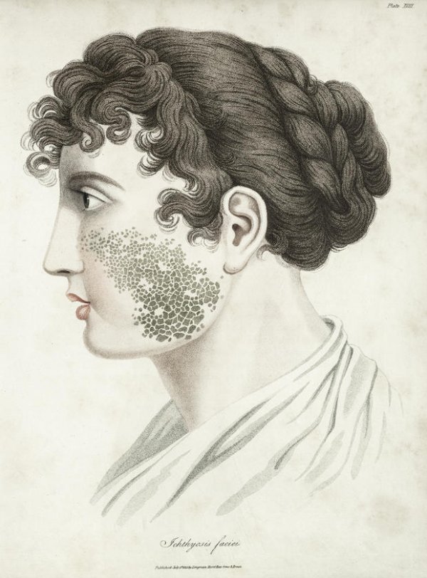 展品包括来自英国医生Robert Willan所著的《皮肤疾病》(On Cutaneous Diseases)一书中的一些插图。虽然千百年来人们一直试图诊断和治疗皮肤疾病,但皮肤病学在一门现代医学领域只有200年历史。Willan 医生被认为是个中先驱,他的书具有里程碑的意义,详细的绘图对大西洋两岸的医生都有深刻影响。当然,这也证明了Willan有个强大的胃。