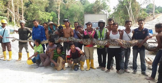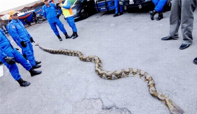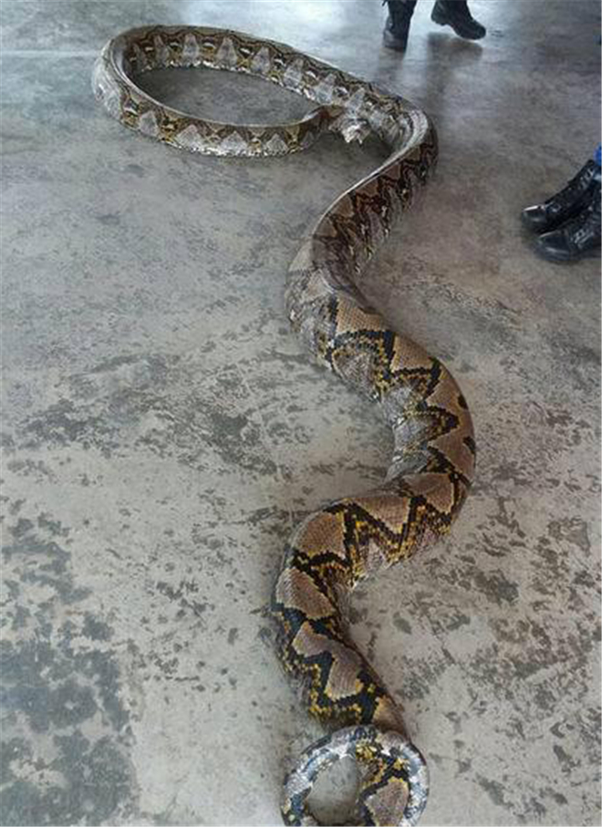 这是一条网纹蟒蛇,是建筑工人在槟榔岛上发现的,其长度达到7.92米,这在野生环境中是很难发现的,之前被称为是世界上最长的蟒蛇长度仅6米多。