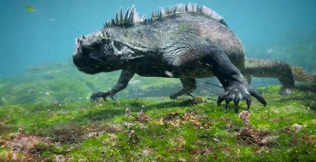 海鬣蜥是素食动物,主要以吃海藻为生,它们最多可潜至9米深的海下。