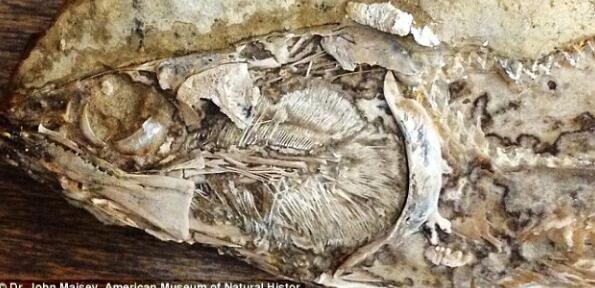 图为桑塔纳组发现的棒鞘鱼化石。研究团队使用无损成像技术探视该鱼的体内结构,发现这一古老的脊椎动物,其心脏比现代鱼类的要复杂得多。