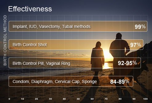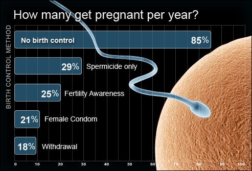不使用任何避孕方法,经常ooxx的夫妻里一年内约85%怀孕。即使是最不可靠的避孕方式也能让意外怀孕几率大大减少。
