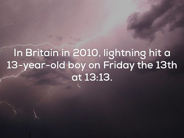 8. 2010年的某个13号黑色星期五,英国一名13岁男孩在13:13被雷击。