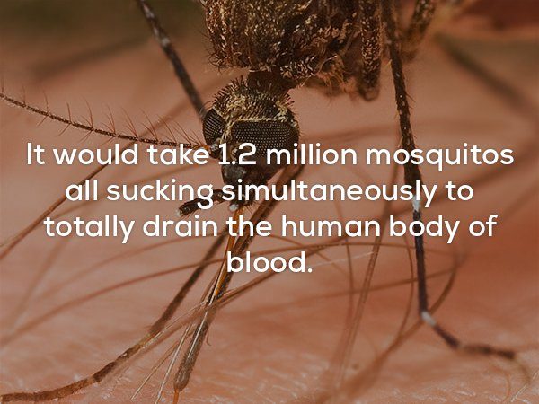 21. 120万只蚊子同时吸血,才有可能一次吸光一个人的所有血液。