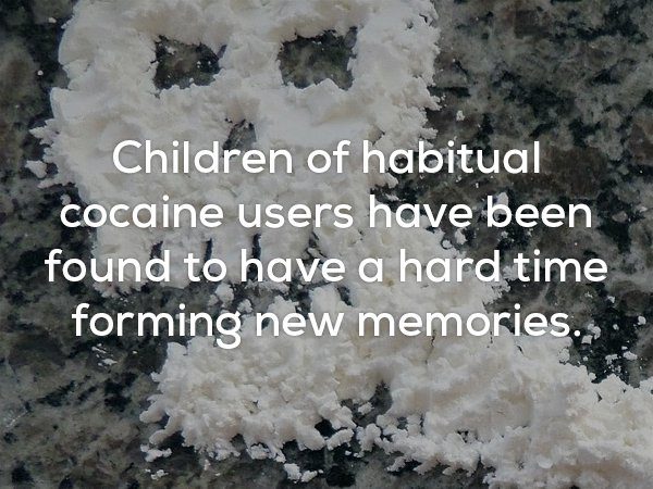 7. 古柯碱成瘾者的孩子比一般人更难产生新记忆。