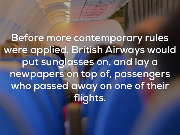 3. 现行的规定开始实施前,以前英国航空会为旅途中过世的乘客戴上墨镜,并盖上报纸。