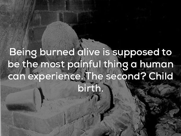 2. 人类所能经历最大的痛苦就是“被活活烧死”。第二呢?生小孩。