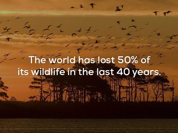 4. 世界上一共有50%的野生动物在过去40年消亡。