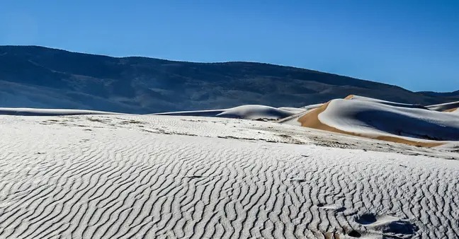白色与黄色交叉的沙丘,这种难得的景象是不是非常惊人呢?