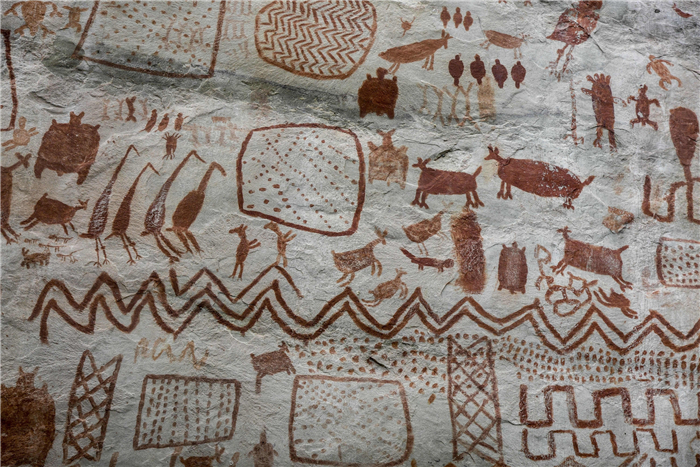 2018年6月8日,在哥伦比亚奇里比克特山脉国家自然公园(Chiribiquete National Park)的一处悬崖岩壁上,也曾发现过类似壁画。(GUILLERMO LEGARIA/AFP via Getty Images)