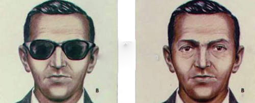1971 年的时候,在一架由美国波特兰飞往西雅图的飞机上,一位叫做DB Cooper 的乘客,威胁如果不给他二十万美金,就要把飞机炸掉。他在西雅图拿到钱以后,还要求机长要载他回奥勒冈。途中他突然背上降落伞直接跳机,FBI 从此都无法查到他的下落,而这宗悬案也是FBI 唯一找不到凶手的劫机案件。上面的照片是根据目击者的形容与确认而画出的犯人照。