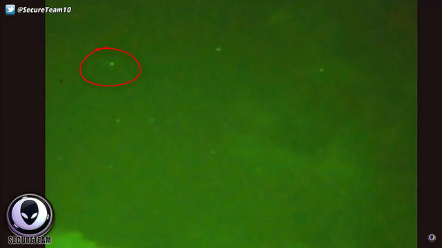 夜视镜头下拍到的不明物体,似乎有磁力在牵引着另一个闪光物!