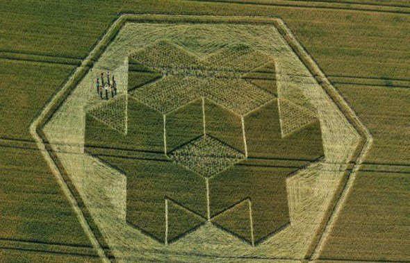 麦田怪圈看起来就像在进化,他们的图案从简单到复杂,不断的在变化,因此一部分人认为,麦田怪圈或是人为,更有人认为是外星人的杰作。而真相如何,还得等待人们去解答。