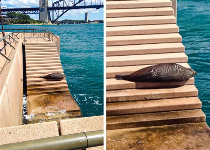 7. 在雪梨歌剧院外面晒日光浴的海豹。