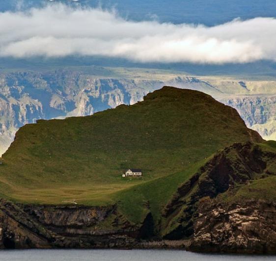 原来,这里是位于冰岛南海岸的火山群岛韦斯特曼纳群岛 (Vestmannaeyjar),其中埃德利扎岛 (Elliðaey),在群岛之中坐落最东北处,也是孤单之屋的所在岛。该岛自从1930年代就无人居住,这使岛上看起来被照顾得很好的小屋景象更令人疑惑。