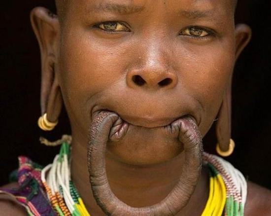 每个民族都有着自己的风俗习惯,一个澳洲的摄影师在非洲埃塞俄比亚山村中拍摄神秘的摩尔西族,摩尔西族唇盘是地位的象征,只有身世显赫的女人才有资格佩戴。出身低微的女人没有佩戴唇盘的资格。但这种传统已经正在改变,摄影师在造访部落时,就已发现了拒绝戴上唇盘的年轻姑娘。