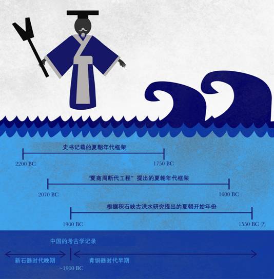 即便夏朝存在的确凿证据虽然尚未现世,但关于它始于何年、没于何月的讨论早已热闹了很久。古籍记载的夏始于公元前2200年;上世纪末的“夏商周断代工程”则通过星相学等巧妙手段,提出了夏朝“公元前2070-前1600年”的时间框架,但目前仍有争议;而本研究证明的史前大洪水,则暗示着一种新的夏初时间点:公元前1900年左右。
