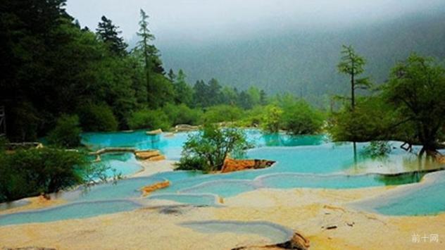 但真正使这里脱颖而出的是这里的3400多个色泽鲜亮的彩池,彩池的水从一个池子流入另一个,源远流长,这幅美景使人沉醉。流水中丰富的矿物质使每个彩池的颜色都有轻微的不同,有白色的、有银色的、橙色的、粉色的、还有蓝色的,从高处看,就像一条黄龙,而那些色彩斑斓的水塘就是它的鳞片。据说,自然保护区里发现温泉有极好的治疗功效,只要你去尝试就能体验到美丽的湖泊、许许多多的山洞和惊奇的野生动物一起使黄龙自然保护区成为地球上真正的人间天堂。