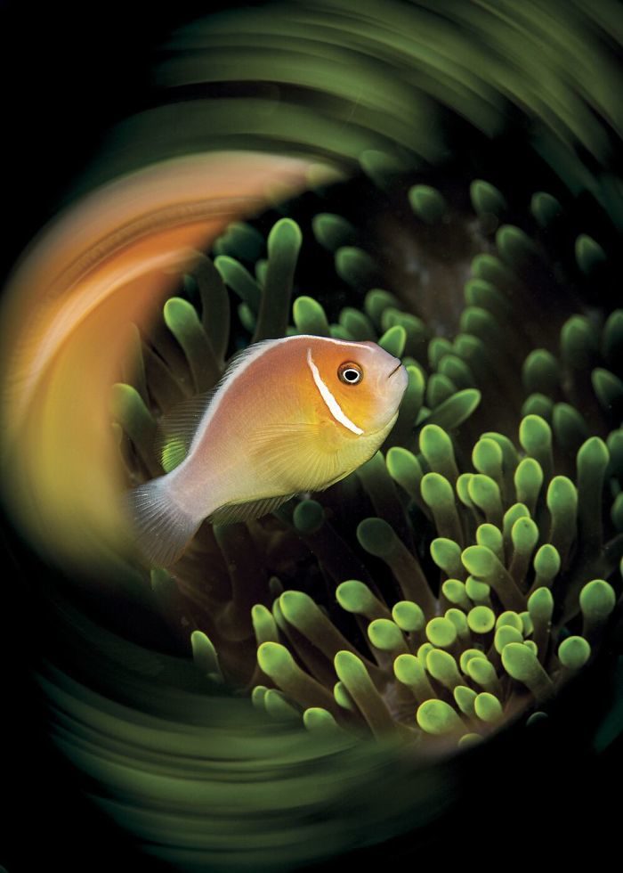 马塞洛说“总觉得这只鱼在嘲笑我,我花了很长的时间才发现巨桶海绵里有这只刺顿鱼。”