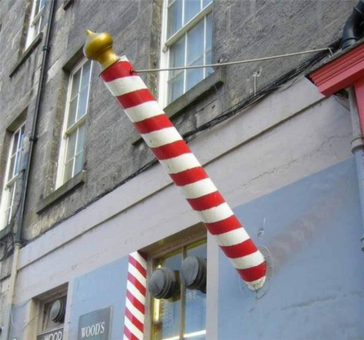 大家有看过旧式的理发店吗?外面有条红白的柱子,不过中世纪的理发师除了剪头发还会做手术,不过是些小手术,同时还会做牙科的工作。感觉当时的理发师懂的好多呀。这些红白的柱子是为了让大家知道,我这里有这么个店,这个设计一直沿用到现在。