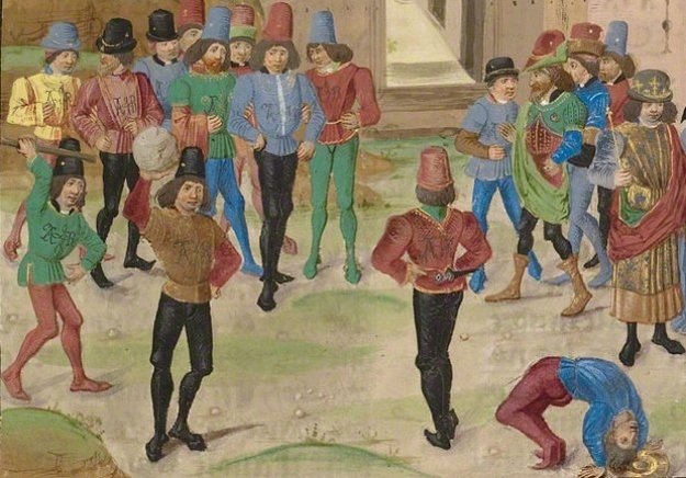 当时他们玩的运动叫Mob football(暴民足球?),是一个跟现代很不同的足球。人数没有限制,充满大量的暴力,因此国王爱德华二世在1314年禁止了它。
