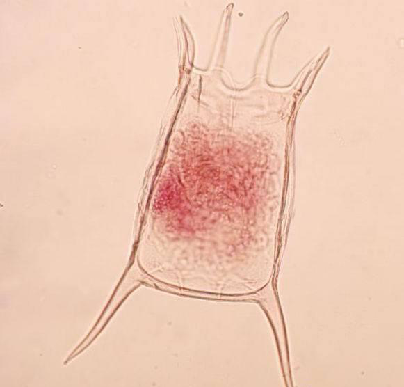 鞭毛藻:鞭毛藻是最大的海洋微生物,体长0.17厘米,长着独特的外壳,以及类似角状的结构。图中的鞭毛藻是放大200倍的效果。加拿大麦吉尔大学微生物学家杰伊-纳多(Jay Nadeau)说:“角状结构可存储蓝藻细菌,当营养物质较低时,为鞭毛藻提供氮。”