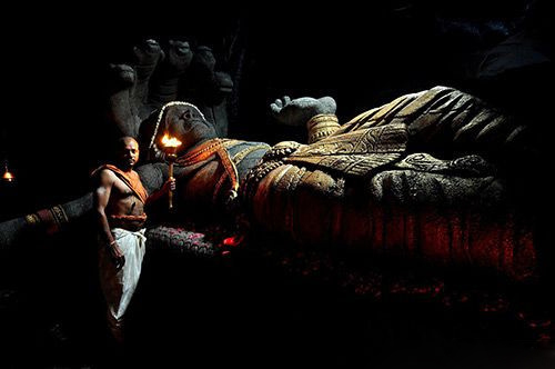 古代帕德玛纳巴史瓦米神庙(Padmanabhaswamy)的神秘之门被两个巨大的眼镜蛇画保护着,并且没有螺栓、门锁或任何其他进入方式。 据说里面拥有难以想象的财富,只能由法力高深的印度苦行僧(SADHUS)唱诵揭路荼咒语(GARUDA MANTRA)才能进入。