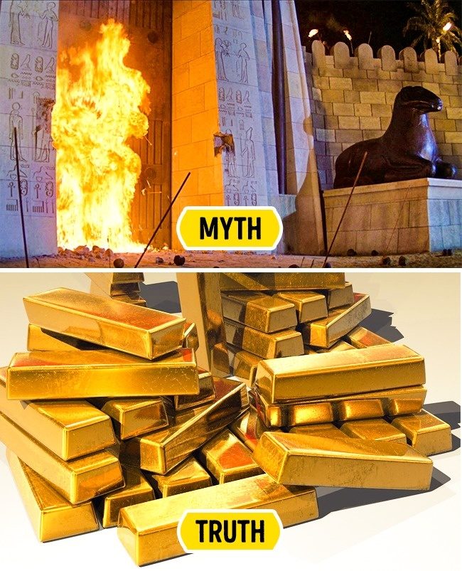 金字塔不是奴隶盖的:希罗多德是第一个在著作中提到奴隶建造金字塔的人。然而,这位古代历史学家的生活比金字塔实际建造的时间来的晚多了。在1990年代,考古学家发现那些建造金字塔的人的坟墓,他们被以非常尊敬的方式下葬,甚至非常像法老王的埋葬方式。考古学家也对他们骨头进行调查,发现这些人吃得很好,而且还会轮班,所以可见他们是工人,而不是奴隶。