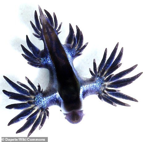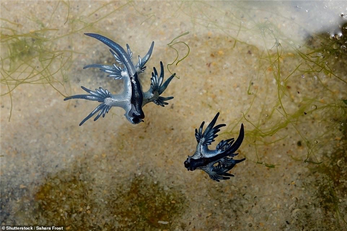 澳洲东部海岸近日有成千上万看起来像外星人的水中生物被冲上岸,生物学学生兼摄影师劳伦斯 (Lawrence Scheele) 拍下了不少大西洋海神海蛞蝓 (Blue Glaucus,又称“蓝龙”Blue Dragon) 身影,它们大多漂浮在海洋远处,直到最近东北风强烈吹拂下被冲上岸。