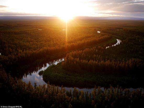 图为夕阳下的西伯利亚雅库特地区,几百万年前,猛犸象便居住在这里。