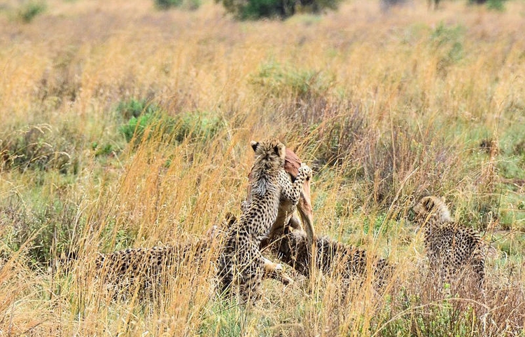 数秒后,猎豹妈妈的幼崽们出现在镜头里,它们将一起享用母亲捕获的这顿大餐。