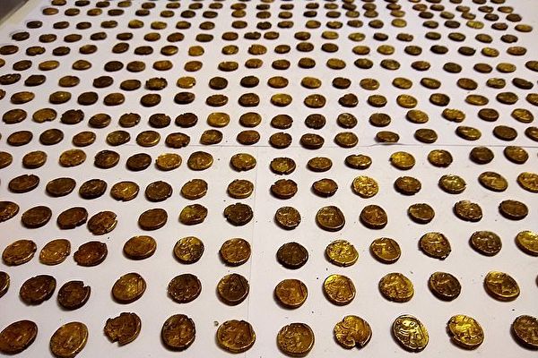 英国一名鸟类爱好者不久前外出赏鸟时,意外发现约1300枚凯尔特金币。(《寻宝杂志》提供)