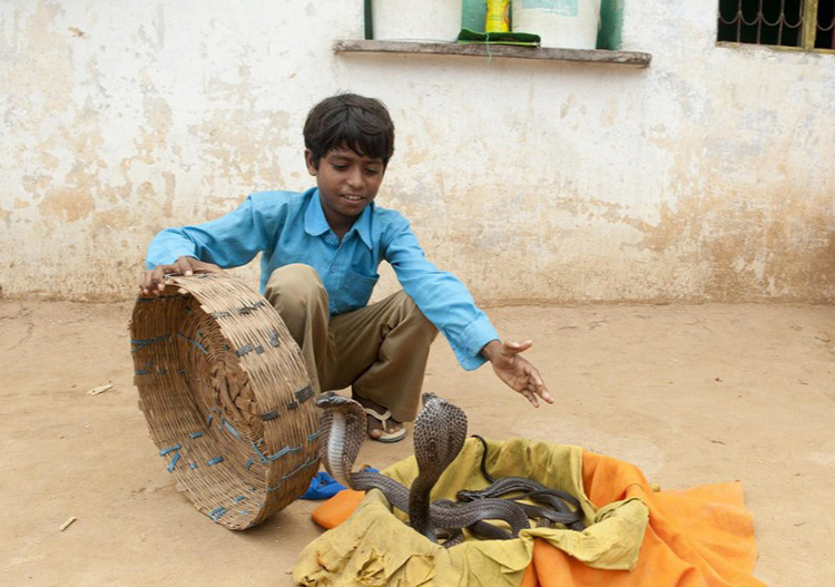 在印度,瓦迪部落的孩子们可以学习如何吸引毒蛇。他们在2岁时开始接受致命的眼镜蛇训练。他们通常要学习10年,在12岁时,他们就会用古代长笛来吸引蛇。