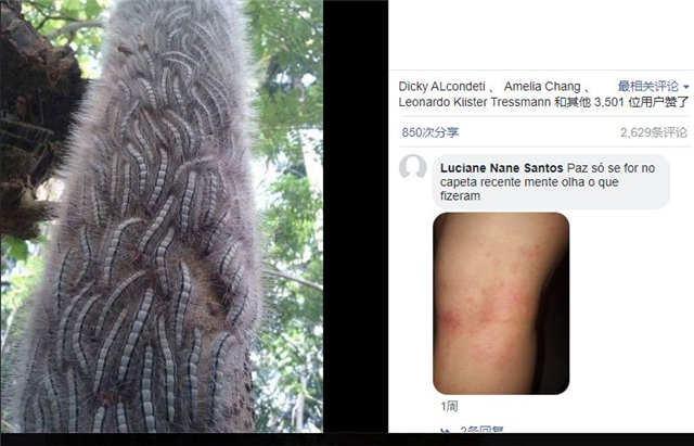 这棵树爬满了松舟蛾的幼虫,曾经亲身碰过这种毛毛虫的网友,忍不住留言“只看照片当初起的过敏红疹,又不知不觉跑出来了。”