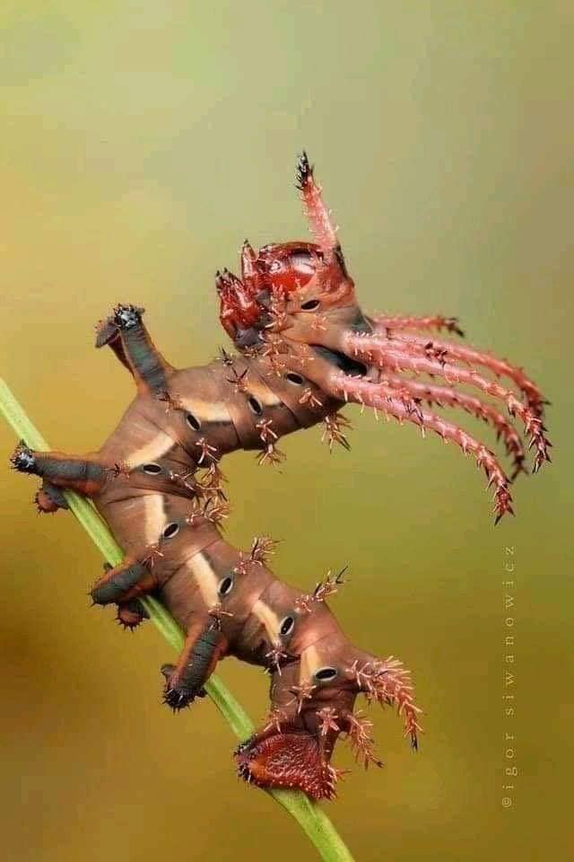 蛾类毛毛虫的世界很广大,甚至出现了这种状似生活大爆炸里Seldon穿过的“多普勒效应Cosplay”类似的视觉干扰涂装,剩下来的,你还有勇气看吗?