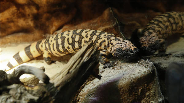这是10月14日在比利时首都布鲁塞尔自然科学博物馆拍摄的美国毒蜥。