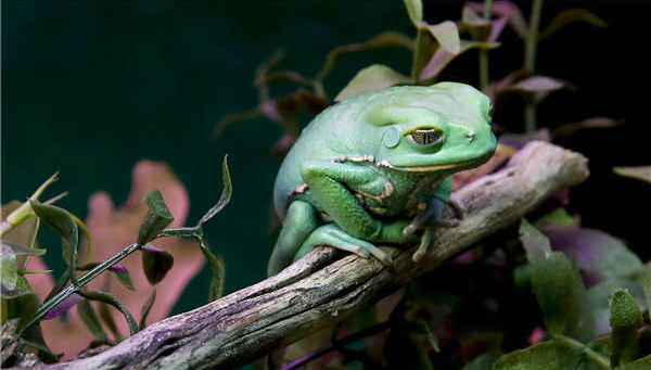 这是10月14日在比利时首都布鲁塞尔自然科学博物馆拍摄的蜡白猴树蛙,原产于南美洲雨林。