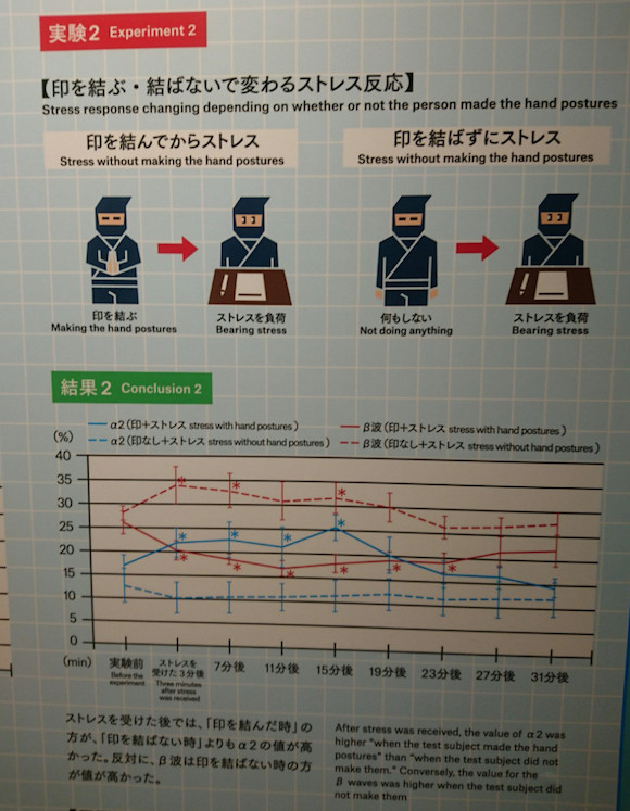 听起来很唬烂,但这项结果已在东京御台场忍者展上面展出,虽然不知道到底有没有效,但做个忍者结印只需要花15秒,试试看到也没大不了的。
