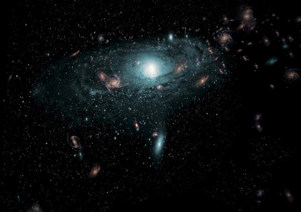 美国和澳洲天文学家意外发现125亿年前的一个庞大星系。此为艺术家笔下的示意图。
