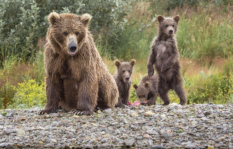 瓦塞林称能看到一只母熊和三只幼崽实属不易,更不要说拍摄到这样的场景了。因为一般情况下,母熊因为需要保存体力和保护幼崽,所以都会独吞猎物。
