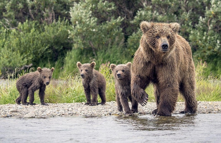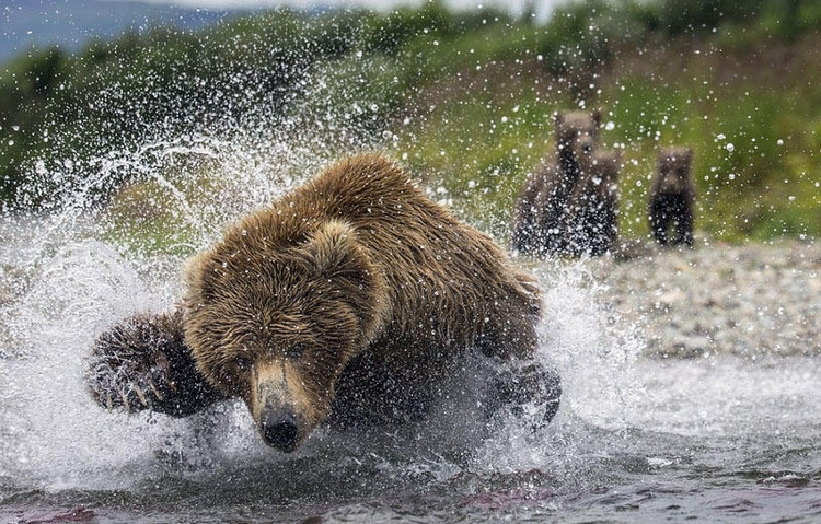 近日,卢森堡摄影师克里斯多夫·瓦塞林(Christophe Vasselin)到美国阿拉斯加拍摄野生灰熊,有幸在卡特迈国家公园抓拍到了母熊为幼崽捕食鲑鱼的画面。