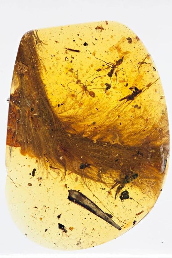 经年代测定,这一琥珀化石形成于9900万年前,属于白垩纪中期的诺曼森阶。邢立达说,“那个年代,长羽毛的脊椎动物,除了古鸟,就是恐龙。”