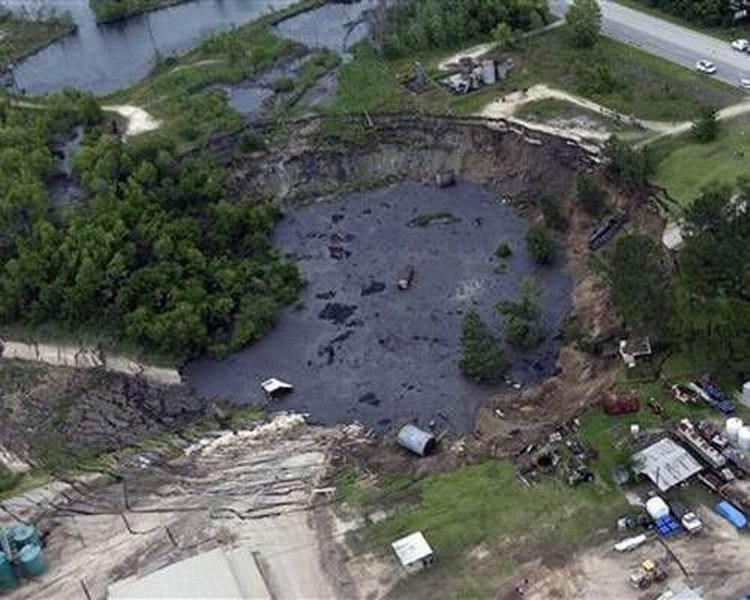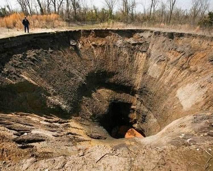 戴斯特坑洞:2008年5月7日,美国德克萨斯州戴斯特地区出现一个6米宽的坑洞,由于不断地沉陷道路物体,最终使这个坑洞不断地扩大变深。