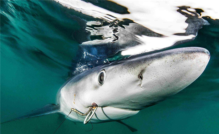 14. 可以看到钓鱼绳与钩子插在鲨鱼身上,每年世界上大约有1亿只鲨鱼被端上桌。