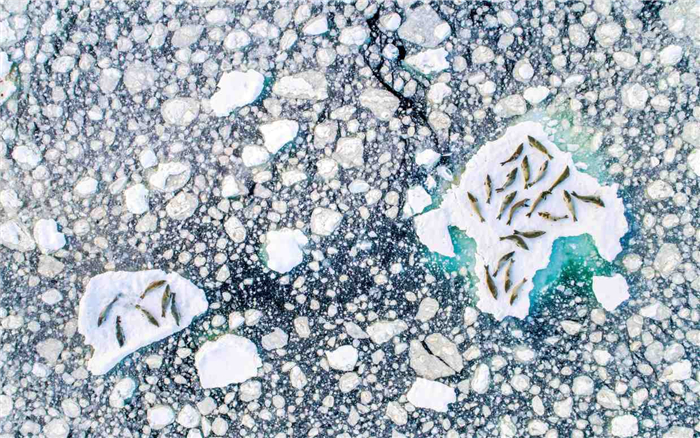 10. 这些浮冰从南北极脱离,这是它们所剩无几的社交空间。