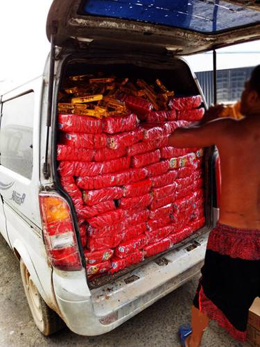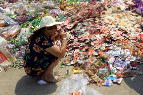 一路过的妇女捡了满满一拖车拉着离开时,记者追上去问捡这多吃的完。妇女回答“几家人家吃,哪还有吃不完的”。现场还有人开着各种车辆,整车的一车接一车的往家里拉,没有任何部门出面制止,有的人还挑灯夜捡,问题食品流向社会不计其数。