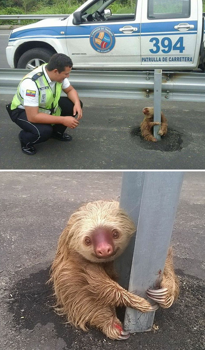 这只可爱树懒抱栅栏卖萌的照片,让很多人都融化了~这小家伙其实是想要到马路的另一头,但对于全世界最慢的动物来说,这并不容易!幸好员警及时帮助,它才成功脱困!这个史上最可爱的救援,其实背后隐藏人类过多开发的隐忧,值得我们反思。