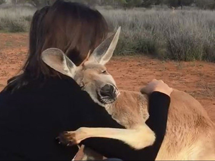 澳洲有只叫做艾比(Abigai)的袋鼠,5个月大的时候被庇护所救援,治疗后顺利长大。身为孤儿的艾比超黏保育员,从小时候就天天讨抱抱,保育员说它的拥抱是最棒的浇愁解药啊!