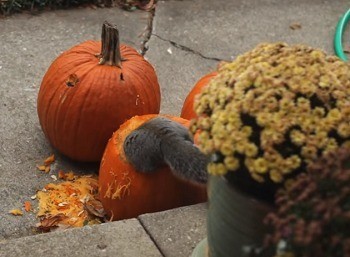 在Youtube上随便打都能搜到一堆“喝醉松鼠”。而在欧美的万圣节过后,许多家庭都需要一些时间来处理掉这些拿来雕刻、已经发出阵阵腐烂香气的南瓜,而这些地方就会变成松鼠拿来当作度过圣派翠克节(爱尔兰节日,在万圣节之后)的南瓜小木屋。