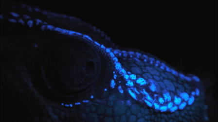 人们早就已经知道,从骨头会发出萤光(人的牙齿也会),但它们通常都隐藏在身体组织层的下面,因此常常紫外光都照不太到。但变色龙就不一样了,他们有奇怪的绝招: