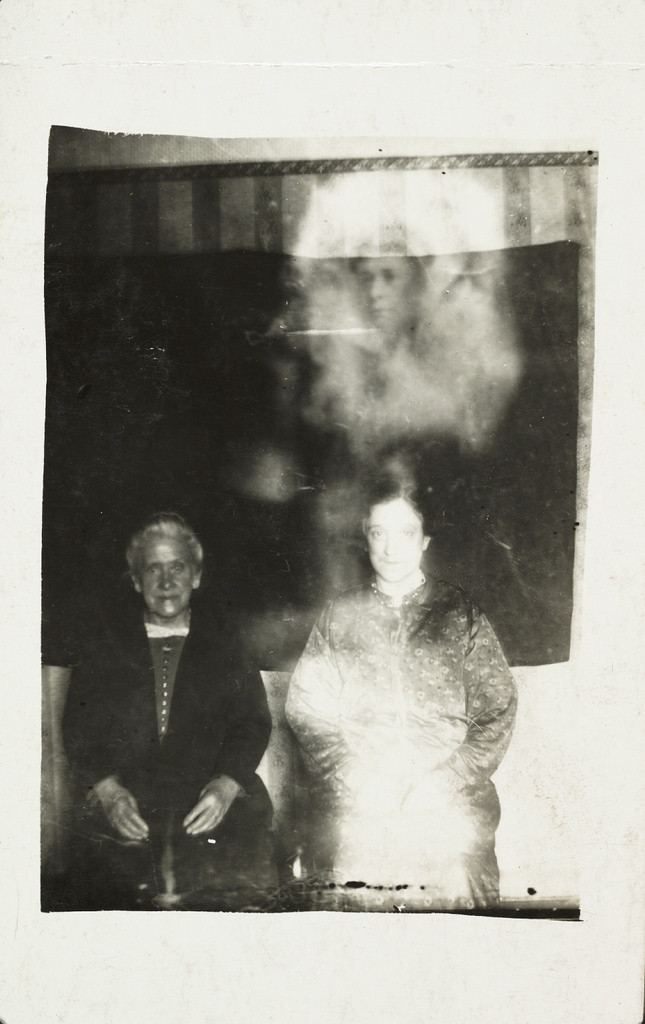 不过,这些照片其实是假的!这些作品是由William Hope在当时用双重曝光手法“发明”了灵异照片,他用一块有图像的玻璃片(当时使用湿板摄影),然后再以此为他人拍照。